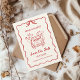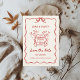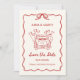 Meddela din bröllpsdag med stil med dessa charmiga, handillustrerade "Save the Date"-kort, designade för att fånga andan av kul och romantik! Detta trendiga, fantasifulla kort är perfekt för par som älskar en vintage-touch med en twist av modern enkelhet. Illustrationen visar en lekfull bröllpsbil med hjärtformade ballonger som släpar efter, vilket sätter en lättsam, avslappnad ton för er speciella dag. En delikat vågig ram, krönt med en söt rosett, ger designen en stänk av vintage-flair, medan den livfulla röda färgen lägger till en glimt av festlig glädje till konstverket.