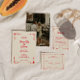 Retro Handskriftlig meny Whimsical Red Bröllop Inbjudningar