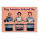 Celebrate the heart of the office with this retro-inspired Administrative Professionals Day design, featuring three stylish mid-century office professionals seated behind classic vintage typewriters. With soft pastel tones, clean composition, and nostalgic 1950s flair, this design honors the dedication, organization, and professionalism that keep workplaces running smoothly.