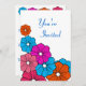 Ljusa tropiska blommor framträder mot en mörk blått bakgrund på den hawaiiska temainbjudan. Använda de här inbjudningarna till en luau, tiki party, öppna hus, födelsedagsfest, möhippa, årsdag, mottagning, studentfest, pension party, etc...Utformningarna är från originalillustrationer.
