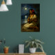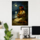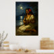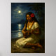 Retro hawaiisk flicka & ukulele på en månbelyst st poster