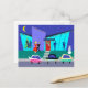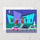 Detta Retro Tecknad-julkort i Party kommer att ge er helgdag. Utsidan av ett modernt hus i mitten av århundradet kännetecknas av design. Genom golv för att få tak över glasväggar för turkos kan vi se marinblåsilhuetterna av festive party goers. Ett par chattar framför en grönt Julgran, som dekoreras med tealdekorationer. På motsatt sida av rummet kan vi se en dansman och den mångåriga man som alla försöker undvika. Utsidan av huset har en glatt röd dörr med en andedräkt av helgdag, en överdimensionerad bricktråd av lila och en färgstark ljus av julen. En grått-promenad skär en sväv till ytterdörren, genom tårgräset. Natt har ett mörk blått himmel med en gult, ett halvmåne måne. Den plastfilm snögubbe som dekorerar frontgården möts av säsongens första blomstrande snö. Ett attraktivt par gör "cha-cha-cha" på vägen till sin bil. Den blondande kvinnan bär en klar röd klänning. Hon håller en sprit av mistletoe i ena handen. Hennes stiliga eskort bär en svart kostym och en röd slips. Hans händer är inlindad i kvinnans midjan. På gatan, framför huset, kan vi se tre, ljusa, färgad klassiska bilar. Beställning idag och party som 1959!
