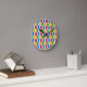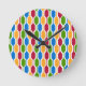Den här klockan har en modern utformning av retrohexagoner i rött, grönt, blått och guld.