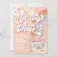 Fira ditt lilla barns speciella dag med denna retro-hippie födelsedagsinbjudan med regnbågar, prästkragar, fredstecken och en groovy blombil. Perfekt för en barnkalas, denna lekfulla design blandar vintage charm med ljusa, glada färger för att sätta tonen för en rolig fest. Anpassa med ditt barns namn, festdetaljer och RSVP-information för att skapa en unik souvenir. Idealisk för boho-, hippie- eller regnbågstema födelsedagar, denna inbjudan tillför fred, kärlek och glädje till din händelse.