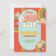 Retro 1960:s inbjudan till grafisk regnbåge för babyskor från 1970. Med grafisk bås och daisy för blomstereffekt i färg av orange, blått, grönt, gult och vitt. Om du vill göra fler ändringar går du till Anpassa den här mallen. På grund kan du se "Vill du anpassa designen ännu mer? Klicka på EDIT med Design verktyg.