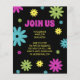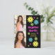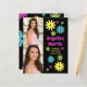 Roligtens inbjudan till studentfest för återköp av hippie-stil-budgeten med färgstark rosa, teal, grönt och gula blommor på en svart bakgrund tillsammans med 2 av dina favoritfoton. Det här kortet är designat både fram och bak. På kortets framsida finns dina foton, student namn, skolåret namn och studenten, och baksidan har information från party.