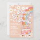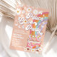 Fira i groovy stil med denna retro-hippie födelsedagsinbjudan som innehåller en pastellregnbåge, fredsbuss, prästkragar och lekfulla retro-ikoner. Perfekt för en 1-års födelsedag eller någon annan rolig fest, denna glada design sätter tonen för fred, kärlek och glädje. Anpassa med dina festdetaljer för att skapa en unik souvenir som gästerna kommer att älska. Idealisk för boho-, flower power- eller vintageinspirerade evenemang, denna inbjudan lägger till en lekfull touch till din speciella dag.