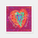 Dessa bröllop save the date pappers servetter har en retro hippie stiliserad hjärta i rött, rosa och turkos på en rosa bakgrund. Anpassa med parets namn och datum i modernt skrivsätt. Designad av den världsberömda artisten Tim Coffey.