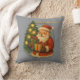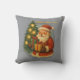 Bring timeless holiday warmth into your home with this vintage-style Christmas throw pillow featuring Santa Claus holding gifts under a glowing Christmas tree.
