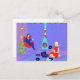 Retro Home för Helgdagarna Postcard ser ut som en scen ut ur 1960 års TV-speciell. Den minimalistiska utformningen har ett attraktivt par av tecknader i vardagsrummet i ett modernt hus i mitten av århundradet. Rummet har en framträdande plats i en lila- och blå stenvägg och en passande lila och blå stripe-matta. Mot väggen finns en turkoskronformad kamera med en brinnande eld. Två, röda och vita julstrumpor har hängts upp av modet som skorsten försiktigt. Strängen med färgfull julklapp ljus är uppströms på väggen. I hörnet sitter husets suave man i en röd äggstol. Han bär en blå kostym med röd slips. Det finns en spirg av holly fäst på hans lapel. I ena handen håller han ett martinistiskt glas. Ingen han är så fullt av julandan! Förutom honom finns det en liten, grönt Julgran med prydnadsföremål och en gult stjärna. Det finns en gult Sputnik-ljusfixtur. En blond med ett timglas figur är sitta vid matta. Hon bär en festlig, röd klänning och tomthatt. Förutom henne, på golv, finns det en blå och svart bärbar rekordspelare. Flera julalbum är utspridda nära den vackra sejmen. Gå fram och sjunga. Du vet att du vill!