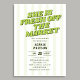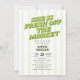 Meddela den mest spännande nyheten under säsongen med en bröllopsfest-inbjudan som är kvick, varm och underbart stilren på samma gång. Den feta rubriken Hon är ny på marknaden fångar blickarna i en slående retro-seriff-font som inger vintage-säkerhet och ett vetande leende i varje detalj, det perfekta sättet att fira en brud vars hjärta officiellt är taget. En glad bakgrund av mjuka pastellila gula ränder knyter samman hela designen och frammanar den ljusa, luftiga charmen hos en fest som känns lika fräsch och glädjefylld som själva tillfället.