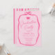 A retro Hot pink and pastel pink graduation layout with a soft hand drawn coquette-inspired ribbon frame and elegant script typography. The front features a refined invitation design with a bow detail, while the reverse side highlights a full photo framed by bold vertical stripes for a stylish, fashion-forward look.