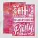 Retro Hot Pink Shh Surprise Birthday Party Invitation! With digital watercolor effect.