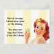 Retro hemmafru med en cocktail i handen och det roliga ordspråket: Jag borde sakta ner på drickandet Den andra delen säger "Lyssna inte på henne hon är full