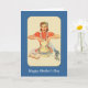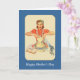 Det vita hälsningskortet i mors dag är blått, med vintage av en hemmafru i en klibbig matlagningssituation. Vit text på utsidan och blå text inuti är helt anpassade att läsa vad du vill. Roligt mors dag-kort.