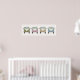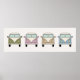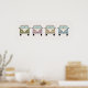 Denna roliga affisch visar en framsida av fyra vintage retro husbilar i grönt, rosa, gult och blått. Ett sött tillägg till ett barnrum.