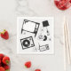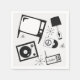 Svart och vit återgivning av tv-apparater, radioapparater, lampor, skivor och rekorspelare på pappra blöjor. Roligt för varje händelse, särskilt för pension party.