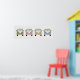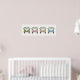Denna roliga affisch visar framifrån fyra vintage retro husvagnar i skåpbilsutförande i nyanser av grönt, rosa, gult och blått. Ett sött tillägg till en barnkammare.