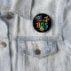 Roligt och färgstark 80:s svarta knapp, med en ljus, nylonfärgad färgad som säger "i kärlek 80-talet", ett kassettband, ljusa retrosolglasögon, ett gettoblaster (boombox) och några spridda stjärnor.