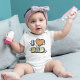 Retro baby-kroppsdräkt med feta vita stjärnor och ordspråket "I KÄRLEK PAPPA" i ett färg-teckensnitt och ett sött hjärta.