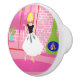 Retro i Rosa Knob ser ut som en scen ut ur en romantisk komedi från 1960. Den minimalistiska designen visar en sofistikerad kvinna i hennes ultrakitschi och ultrarosa, penthouse-lägenhet. Rummet har en rosa tegelvägg med vit linjer. Framför väggen finns det en grönt konkamera med en brinnande brand. Genom att skjuta glasdörrar ser vi en rosa balkong med en vit rälsförhöjning. En lush, tropisk växt ligger i en vattenbrunn. Balkongans vy är av en silhuett av en stor stadskylin. Det är klart att silhuetten är i rosans nyck! En gult, ett halvmåne måne ligger i himlar. Att stå på en shock rosa är att matta i lägenheten är det främsta dam i denna konstruktion. I skarp kontrast till den rosa värld hon har skapat har den vackra blondinen en formpassning, en svart, skophalsad överdel med en lång, flammande, vit kjolt med svartludd. Med den här designen kan du också tittar dig på jorden med ro färgad-glasögon!
