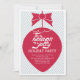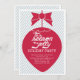 Retro inbjudan för julprydnadjulfest som presenterar en retro röd julbolluppsättning på en blek - diagonal randbakgrund för blått & för vit. Bläddra vår 'Tis säsongen för att vara den jolly helgdaginbjudan över som beskådar en matcha baksida för ett extra speciellt handlag. Modern helgdaginbjudanperfekt för ett kontorsparty, företagsparty, cocktailparty, middagparty eller helgdagfirandeparty.