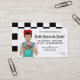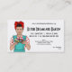 Detta presenterar retro inspirerade designer en 50-talkvinna som ha på sig ett rött, och vitpolkaen pricker klänningen med ett krickaförkläde. Hon lockigt brunt hår slås in i en matcha röd head sjal. Hon är hållande en plätera av smaskig och färgrik muffins. Denna mångsidiga design har överflöd av text och kan skräddarsy för någon stekhet affär. Flipsidan av detta vintagekort presenterar ett svartvitt schackbrädemönster för anpassade.