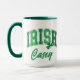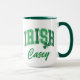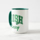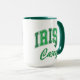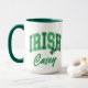 Visa ditt irländska pride med den här roligten mugg med två ton som har ord "IRISH" i ett böjt retro-varieterande typsnitt i ett sjukt och mörk grönt färg. Anpassa genom att lägga till ditt namn eller speciell text. Ett underbart tillbehör till St. Patrick Day-säsongen.