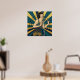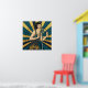 A joyful vintage-inspired illustration of a jazz singer with a classic microphone. Featuring a vibrant blue and metallic gold sunburst background, this elegant cabaret-style poster brings the energy of the Roaring 20s to your home bar, lounge, or music room.