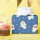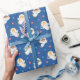 En vintage stil mönster av söt julklapp änglar på blå bakgrund dekorerar denna pappra julomslutning. Perfekt för inslagning av Julklapp. Designad av Blackberry Boulevard.
