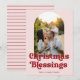 Ett kort med ett religiösa-meddelande och ett foto i en bågform. "Julvälsignelse" är i fet stil, rund, på rosa. Baksidan har det röda vågrät rand på rosa.