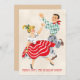 Ta ett steg tillbaka i tiden med detta förtjusande retro julkort med dansande par, som fångar glädjen och romantiken under semestern. Med ett stilfullt dansande par frammanar denna design från mitten av förra seklet glamour och kul på vintage-semesterfester. De livfulla färgerna och nostalgiska detaljerna ger en klassisk 1950-talskänsla, perfekt för att lägga till en lekfull, retro twist till dina högtidliga hälsningar. Personifiera insidan med ditt eget hjärtliga budskap för ett verkligt oförglömligt kort som dansar sig in i hjärtat på dina nära och kära.