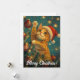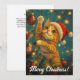 Sprid julglädje med detta charmiga julkattskort, med en söt kattunge i en tomtehatt som sträcker sig efter dekorationer på ett vackert dekorerat träd. Bakgrunden är prydd med gnistrande ljus och en festlig tealblå himmel, medan texten "God Jul!" tillför en glad ton. Texten på framsidan är redigerbar, så att kunder kan anpassa meddelandet på sitt eget språk eller skapa en personlig hälsning, vilket gör detta kort perfekt för kattälskare och julfirande över hela världen. På baksidan finns också en mall för anpassat meddelande