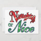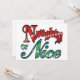Vintage-illustration God jul semester tecknad clip art textdesign. Orden "Naughty or Nice" skrivna med blanka röda och gröna julfärgsbokstäver.