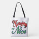 Retro jul, snäll eller snövit röda gröna bokstäver tygkasse