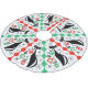 Mid-sekels inspirerade design med en reflekterande prägel med atomic stil svarta katter, grönt och röda julbalkar och svarta stjärnor på en röd, grönt och vit mönstrad bakgrund. Ett anpassade som du kan anpassa med egen text, bilder och egna idéer. En originalbild för digital konst skapat av Jess Perry på QuirkyChic Retro.