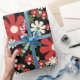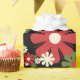 Retro-julblommor, 70-talets estetiskt Blommönster. Utformning av vintagens blomsterkraft, för ett Julafton-helgdag som är både sunt och svalt. Har röd, grönt, grädde och svarta toner. Av Kierkegaard Design Studio.
