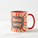 Retro-julens Helgdagar Holly Jolly Typography Mugg har ett festive-retroskriptet "Holly Jolly" i modern typografi som accentueras med en strålbakgrund. Perfekt till julklappar. Designad av © Evco Helgdagars www.zazzle.com/store/evcoholidays