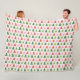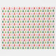 Ett stil i mitten av århundradet modernt mönster i Julgran med trianglar, stjärnor, snöflingor och diagonalt rand. Färg omfattar: rött, grönt, rosa och vitt.