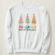 Visa din julstämning med denna lekfulla sweatshirt med en trendig retroillustration av tre julgranar prydda med ornament, färgrik typografi som säger, “FA LA LA,” och en röd, grön och gul färgpalett. Behåll frasen, “och allt det där,” eller lägg till din egen anpassade text för att fånga din unika julstämning.