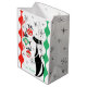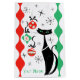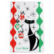 Mid-century inspirerad design med en retro touch med atom stil svarta katter, gröna och röda julgranskulor och svarta stjärnor på en röd, grön och vit mönstrad bakgrund. En anpassningsbar design för dig att anpassa med din egen text, bilder och idéer. En original digital konst bild skapad av Jess Perry på QuirkyChic Retro.