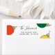 En modern helgdag-kortdesign med tre stil-dekorationer i rött, grönt och gult runt en anpassningsbar returadress. Design av Shelby Allison och Joseph Gonzalez foto på Unsplash