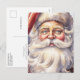 Julvykort med illustration av vintage stil. En porträtt av tomten med sitt stora vita skägg med sin klassiska röda julhatt.