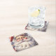 En sten underlägg med en illustration av vintagen stil. En porträtt av tomten med sitt stora vita skägg med sin klassiska röda julhatt.