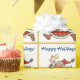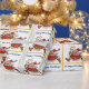 Den här festliga julklappen har en söt karikatyr av Jultomten i att köra skor med gult stjärnor och måne trollspön. Bilden placeras på en vit bakgrund och varje bild ramas in i guld med anpassadet i blått "Glad helg!" Säg spelar ingen roll att du vill. Festiv, unik och färgstark!