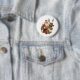 Knapp med en roligt julillustration. Jultomten i sitt traditionella röda kostym rider en stor, skrynklig renar som dekoreras med holly. En Julgran i baksidan.