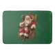 Ett badmatt med en bild av vintage stil som innehåller klassiskt Jultomten sitta i en gammaldags arm-stol. Snyggt traditionell juldesign.