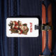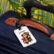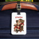 Ett bagagemärke med en bild av vintage stil som innehåller klassisk Jultomten sitta i en gammaldags arm-stol. Snyggt traditionell juldesign.