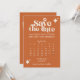 Denna Retro Kalender Bröllop Spara Datum-inbjudan är den perfekta introduktionen till din bröllopsdag. Det krämiga och brända orange färgschemat ger en sann modern retro-vibbar.