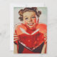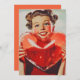En nostalgisk bild från 1950-talet som inspirerats av en leende ung kvinna som håller ett glödande, ihåligt, hjärtformat objekt. Hennes pulserande röda attityd och glada uttryck väcker värme, glädje och tidlöshet i romantik, som fångar vintagens charm från tiden.